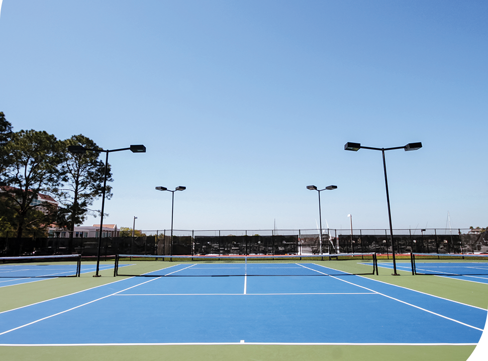 - 6 outdoor tennis courts and 10 outdoor pickleball courts.